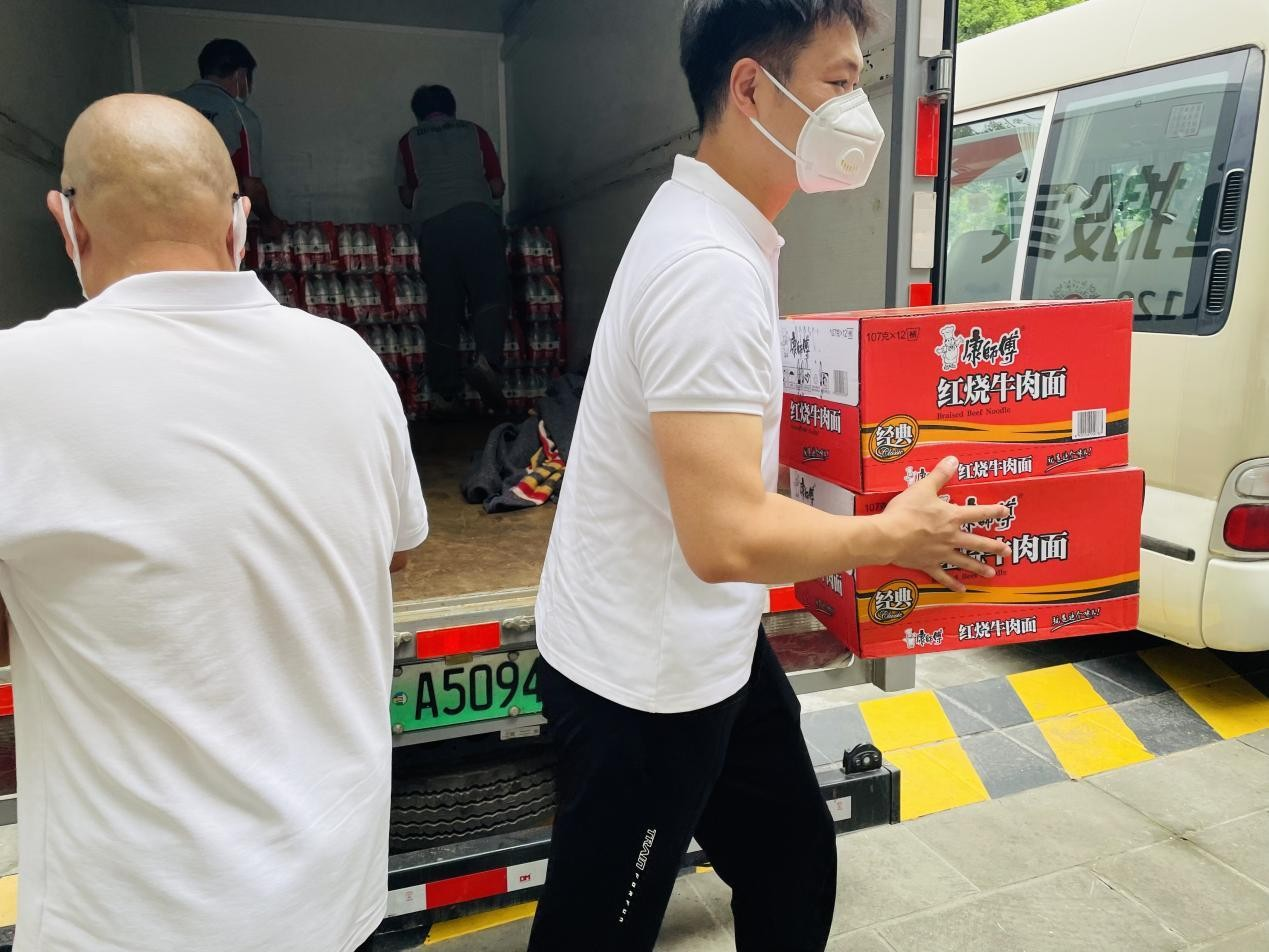 8月2日上午 10:00,由集团副总裁、党支部书记刘巍同志率队,将封控区急需的矿泉水 200件、面包 300个、方便面30箱等实用物资和公司全体员工的一片赤诚之意,交到成华区人民政府青龙街道办事处和成都市慈善总会的同志们手中。
